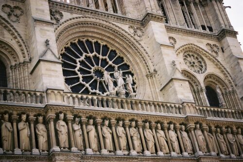 The rosary window on the front of Notre Dame.