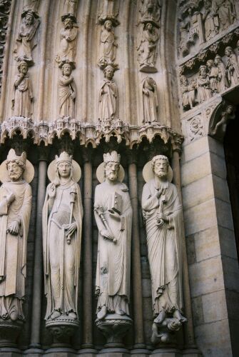 Angels and saints, adorning the entrances to Notre Dame.